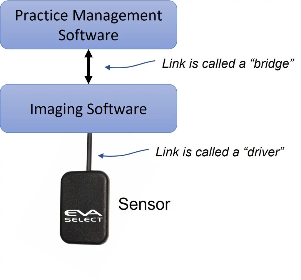 Some offices may see Scenario Two as unacceptable, while other offices may be ok with this if they are saving money. To further complicate matters, sometimes either the imaging software or the sensor (or both) may have the potential to work together to achieve Scenario Two or Three above, but they may require additional pieces of software to do so. In most cases, this additional software comes from the sensor provider, and is called a “driver”. A “driver” is a generic term for a small piece of software that is provided by the hardware manufacturer to “handshake” with a larger software application (e.g. a “TWAIN” driver is a very common one). It’s also worth noting that at least one large software provider charges fees simply to allow someone else’s sensor driver to work with their software.