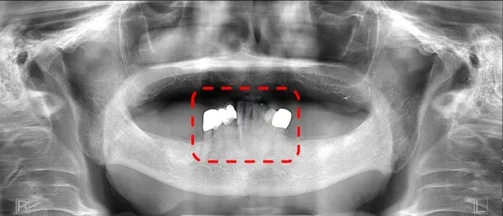 There are a number of reasons that the anteriors may not look clear, but if they look very narrow, this typically points to the patient’s arch being positioned too far forward, or more precisely, the teeth are anterior to the focal plane where the panoramic beam is focused. Another hint of this scenario is when you also see a lot of spine along the sides.