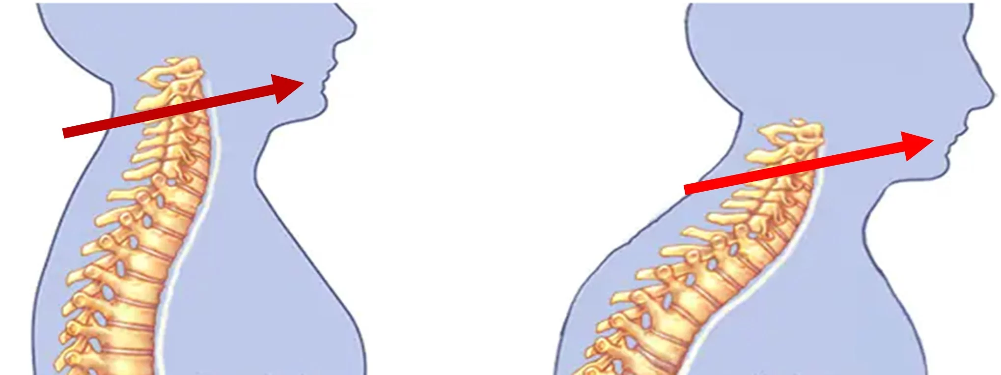 This is typically caused when the patient’s spine is “hunched”, or sometimes referred to as “goosenecked” vs. being erect or, even better, stretched.