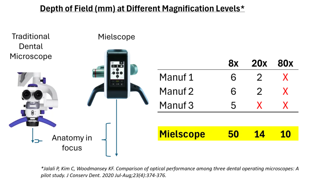 The Mielscope offers a groundbreaking design that combines the power of a traditional dental microscope with design features that actually help the doctor speed up, not slow down. It’s ideal for dentists who want to: